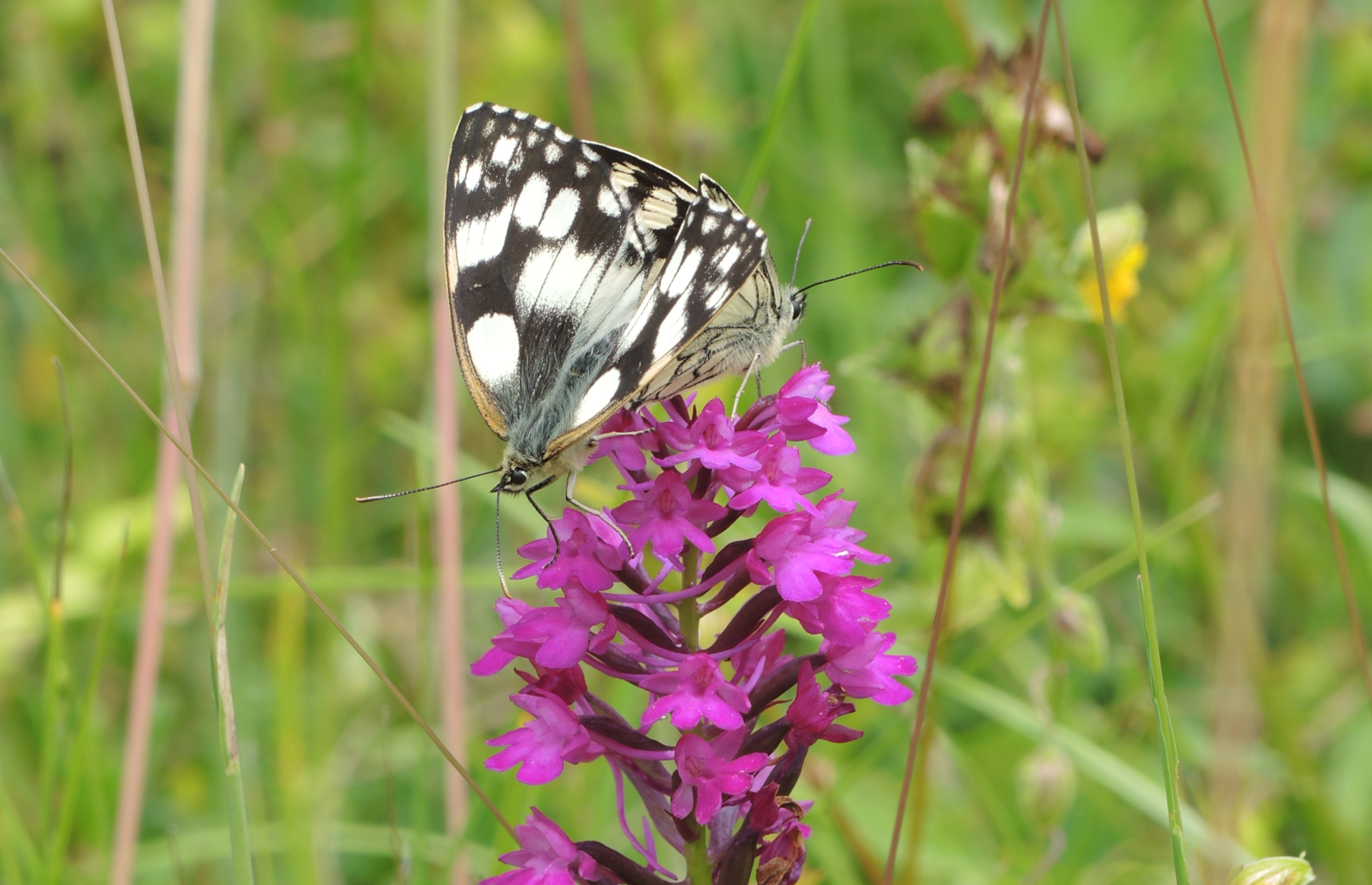 Nicht nur für Schmetterlinge ist die Latschgetweid ein Paradies. Im Frühling blühen in den Trockenrasen verschiedene Orchideen. Im Sommer sonnen sich Eidechsen auf den Steinen. Unzählige Heuschrecken fühlen sich hier wohl, darunter auch eine eigentlich unscheinbare Art. Doch wenn sie vor unseren Füssen auf dem Wiesenpfad wegschwirrt, dann leuchten ihre roten Hinterflügel kurz auf. Und schon ist das Tier wieder im Dickicht der Grashalme verschwunden: Wir sind einer Rotflügeligen Schnarrschrecke begegnet. Ende August bildet die Blüte der Herbstwendelähre den krönenden Abschluss des Natur-Jahres auf der Latschgetweid. Die seltene Orchidee bezaubert mit ihren schlichten, wunderschön gedrehten Blütenständen.
